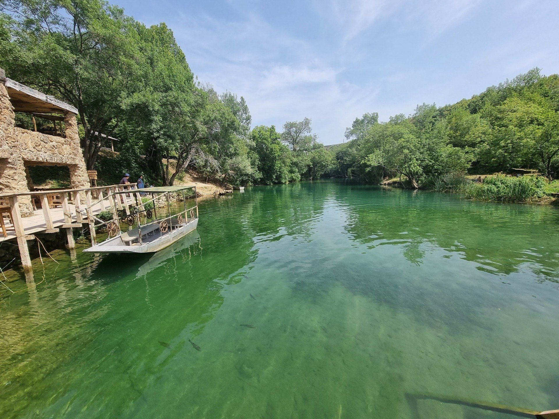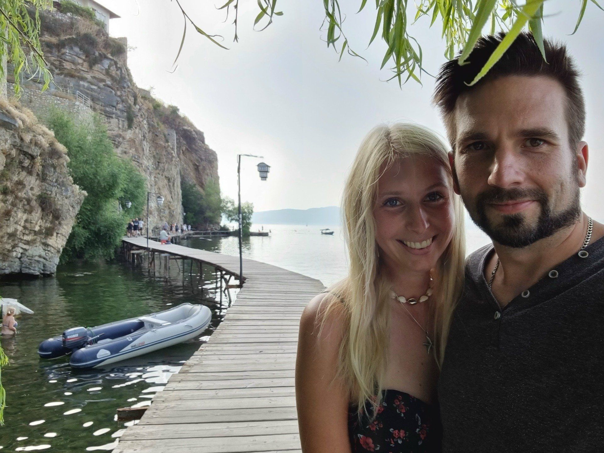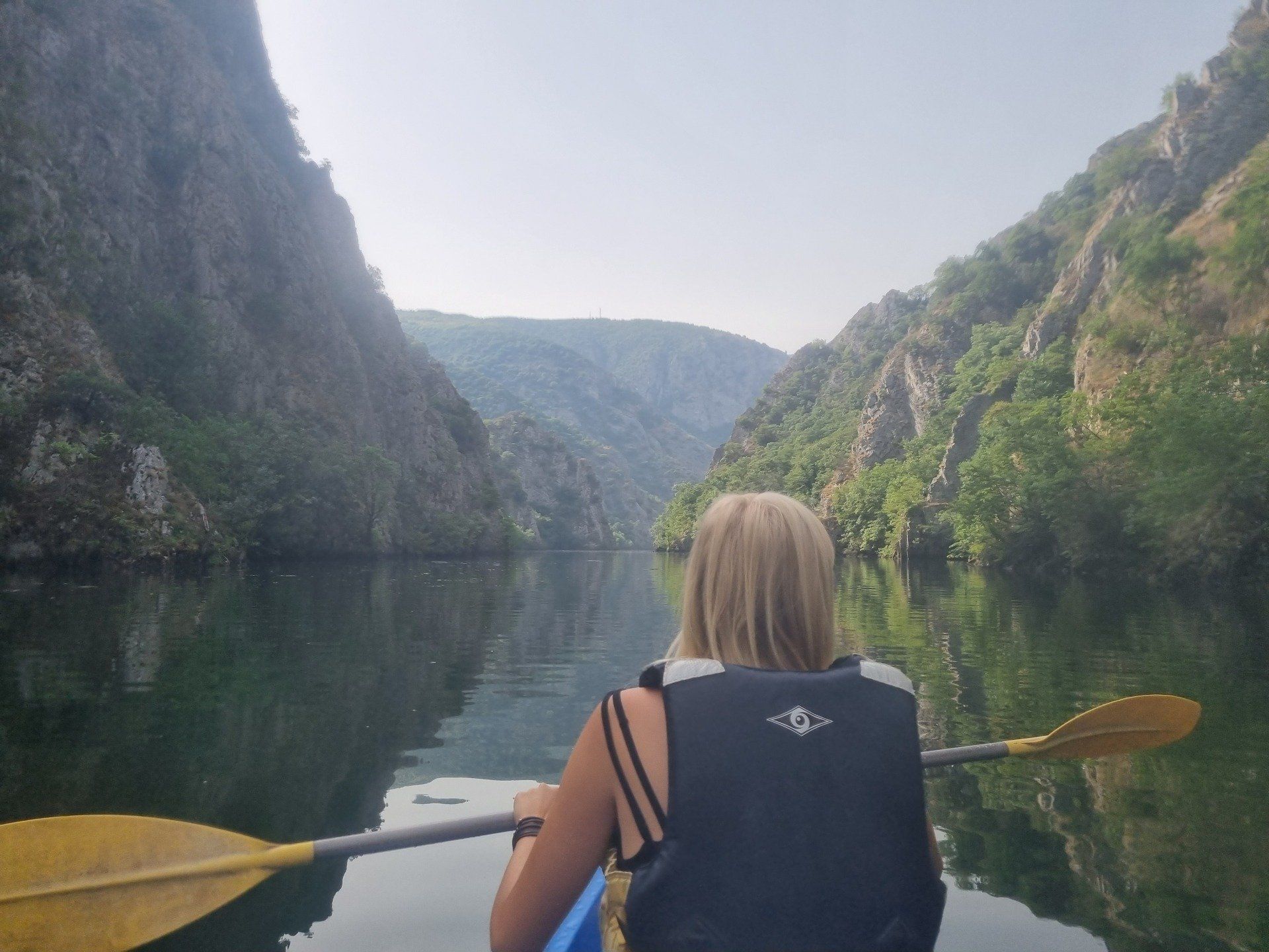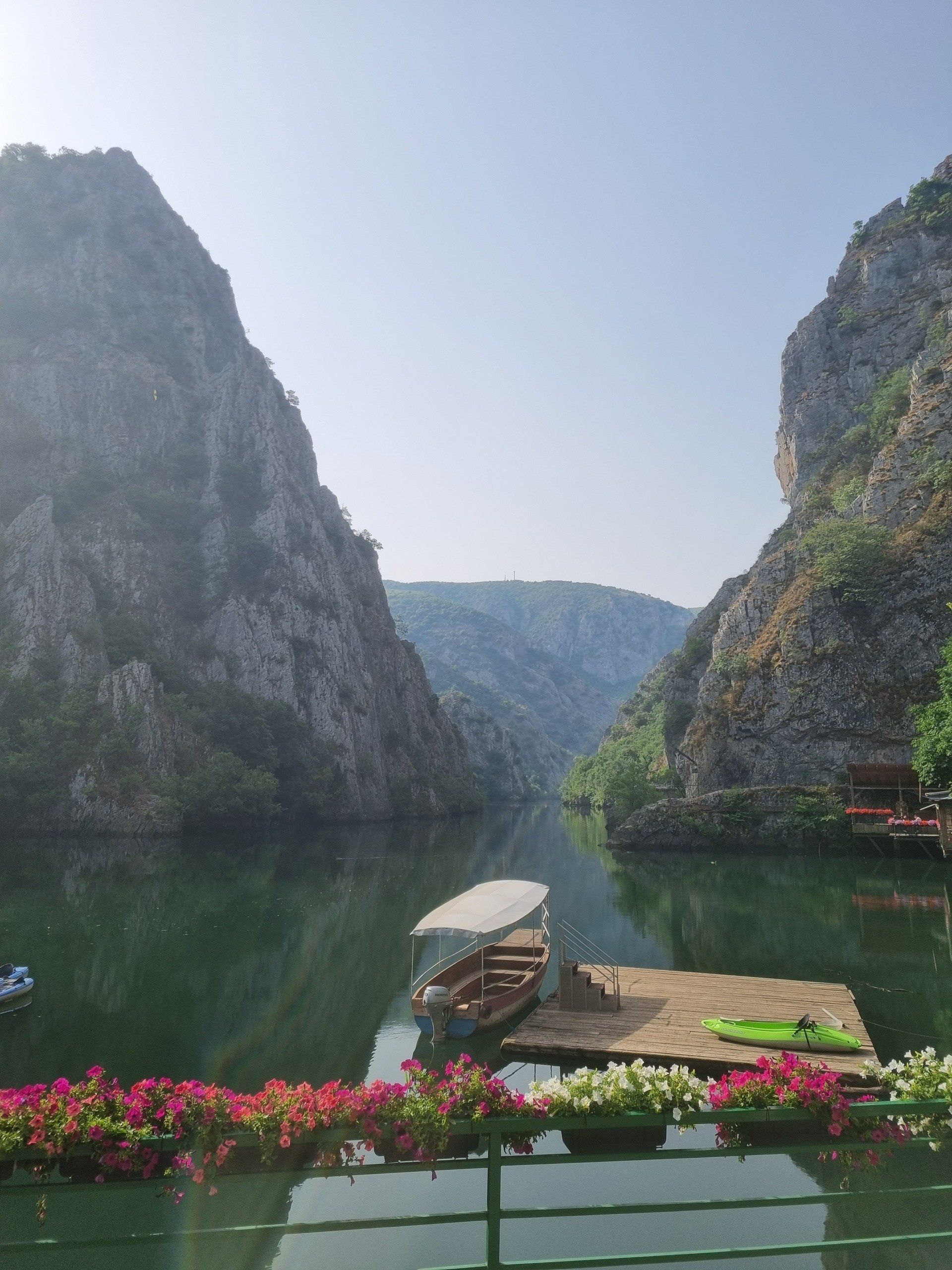 Nach der zweiten Nacht im Park Hotel brachen wir bereits früh morgens zum Matka-Canyon auf. Vor Ort liehen wir uns ein Kanu aus. Während wir entlang schipperten, raubte uns die mit blau-, grün-, und türkisfarbenem Wasser gefüllte Schlucht zwischen grün bewachsenen Felsen fast den Atem! In dieser idyllischen und paradiesischen Umgebung konnte man völlig abschalten und die atemberaubende Natur genießen. Dieses Erlebnis darf bei keiner Reise durch Nordmazedonien fehlen! Heute wartete aber noch ein weiteres Highlight auf uns: Der Ohridsee! Ein weiteres atemberaubendes Wunder der Natur! Bevor wir die Umgebung des malerischen Sees erkundeten, sprangen wir in das kühle Nass und erfrischten uns. Dann entdeckten wir das märchenhafte Umland des Sees. Einen einzigartigen Ausblick hat man auf dem Hügel hinter der orthodoxen Kirche des heiligen Johann von Kaneo. Diese idyllische und romantische Landschaft muss man einfach selbst gesehen und genossen haben.