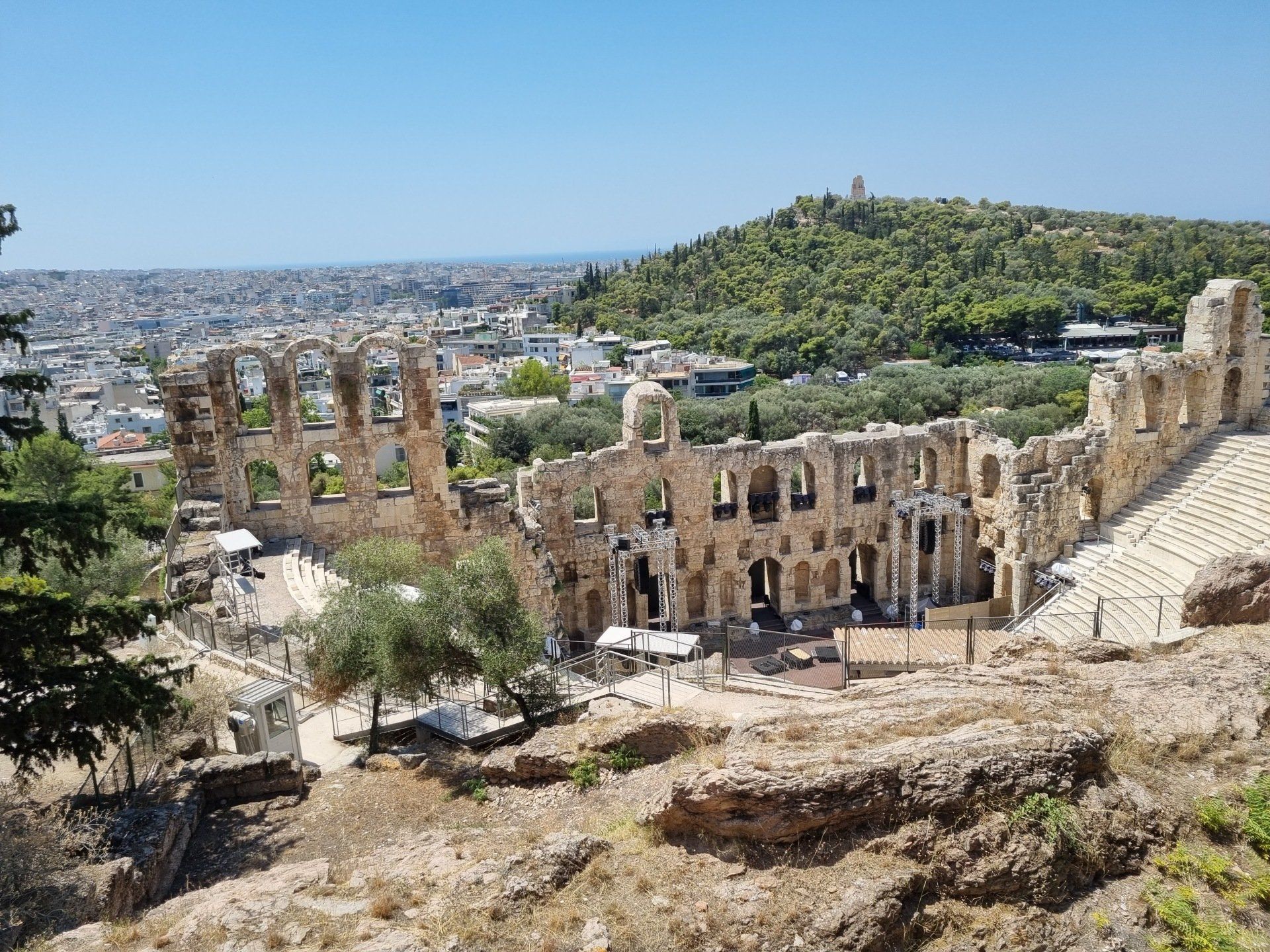 Heute sollten wir das südlichste Land unserer Reise und damit auch das Meer erreichen.Obwohl an diesem Tag über 8 Stunden Fahrt auf dem Programm standen, konnten wir ihn genießen. Die Meteora-Klöster scheinen fast an den steilen Felswänden Griechenlands zu schweben. Bei der Fahrt durch die märchenhafte Landschaft fühlt man sich wie in einer anderen Welt. Um die atemberaubende Natur mit den unwirklichen Bauwerken ausgiebig zu genießen, nahmen wir uns die Zeit für ein Picknick hoch oben auf einem der Felsen. An und auf den bis zu etwa 500 Meter hohen, mächtigen Felsen aus Sandstein befinden sich 24 Klöster. Die Reise hierher lohnt sich aus unserer Sicht auf jeden Fall. Als nächsten Zwischenstopp besuchten wir Delphi. Einst reisten Menschen aus der ganzen Welt in die antike Stätte, um das dortige Orakel zu befragen. Bis im Jahre 391 nach Christus durch einen christlichen Kaiser alle bestehenden Orakel verboten wurden, war Delphi eine Kultstätte. Nicht nur die Ruinen selbst, sondern auch ihre atemberaubende Lage in der Natur sind übrigens beeindruckend. Und dann war es so weit: Das nächste Ziel war Athen! Wir ließen den Abend auf der Dachtersasse unseres Hotels mit Blick auf die entfernte, beleuchtete Akropolis ausklingen.