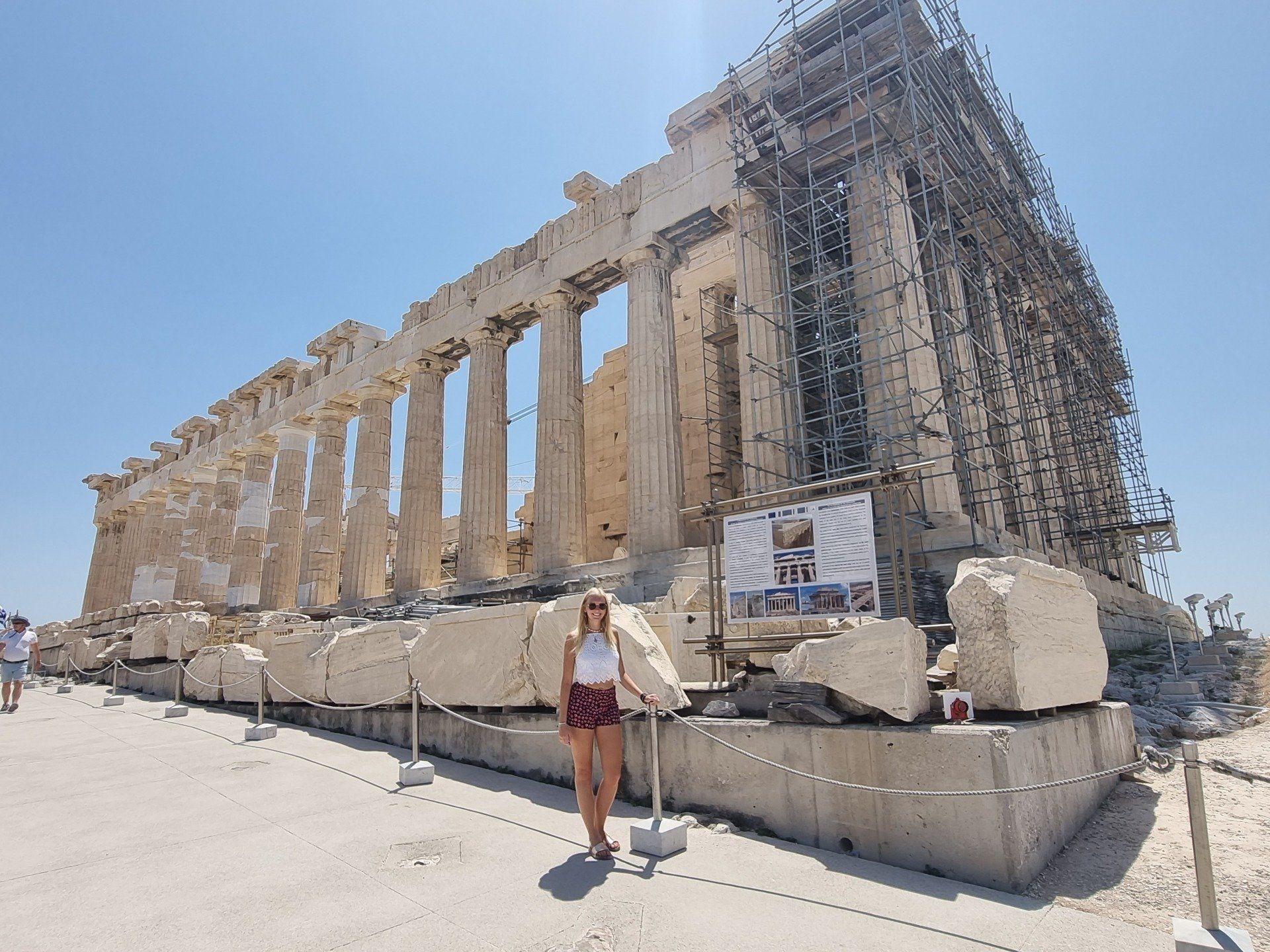 Vormittags machten wir uns gleich auf den Weg, um die antiken Stätten, Tempel und Ruinen Athens zu erkunden. Ein Besuch der Akropolis darf natürlich bei keinem Städtetrip nach Athen fehlen! Das Wahrzeichen der geschichtsträchtigen Stadt thront seit dem 5. Jahrhundert vor Christus auf einem 156 Meter hohen Felsen. Bei fast 40 Grad war der Aufstieg recht beschwerlich und während des Besuchs war jedes Schattenplätzchen sehr willkommen. Die Tour durch die geschichtsträchtige Stadt war sehr beeindruckend, bei der Hitze machten wir jedoch noch einen Abstecher an einen Stadtstrand in Athen, um uns im Meer abzukühlen. Was für ein tolles Gefühl!