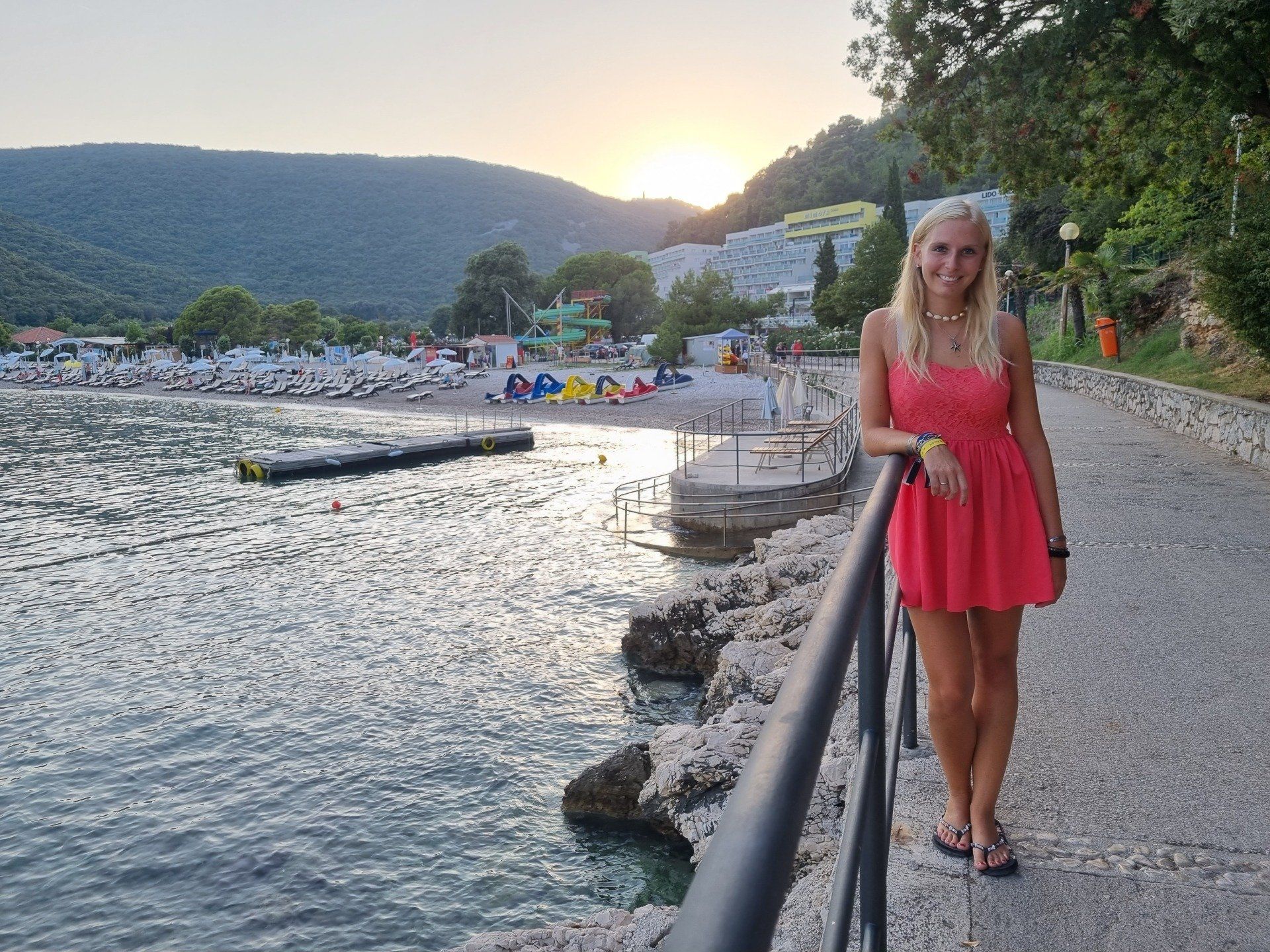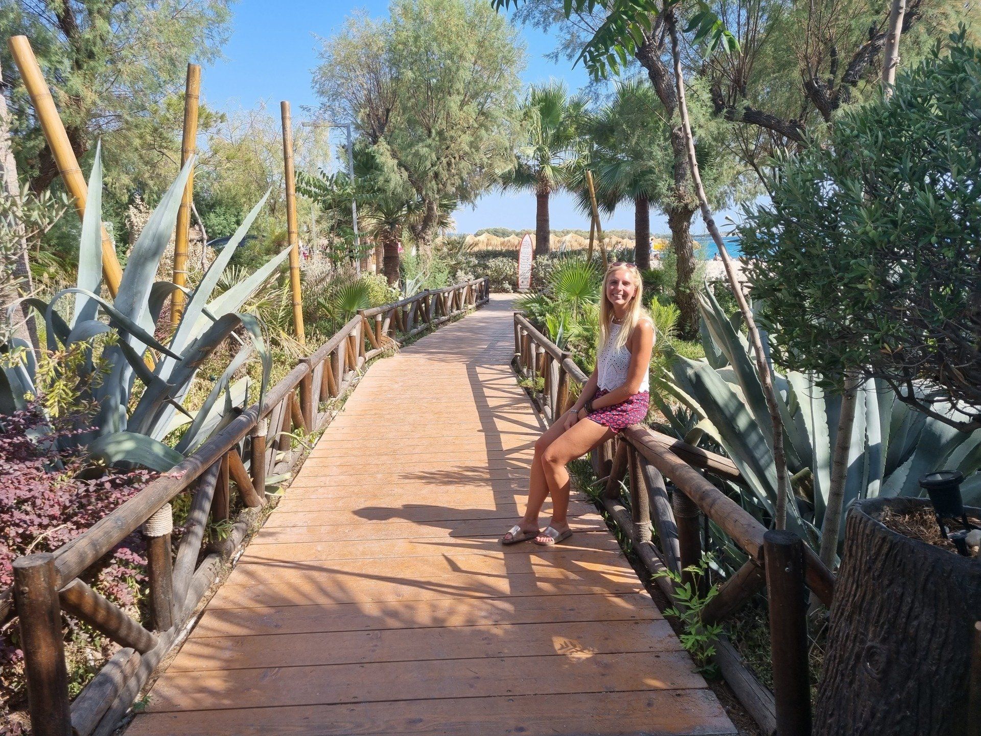 Heute badeten wir in den verschiedenen Pools der Hotelanlage sowie im kristallklaren Wasser des Meeres. Außerdem wanderten wir in den Wäldern entlang der Küste und flanierten an der Uferpromenade.