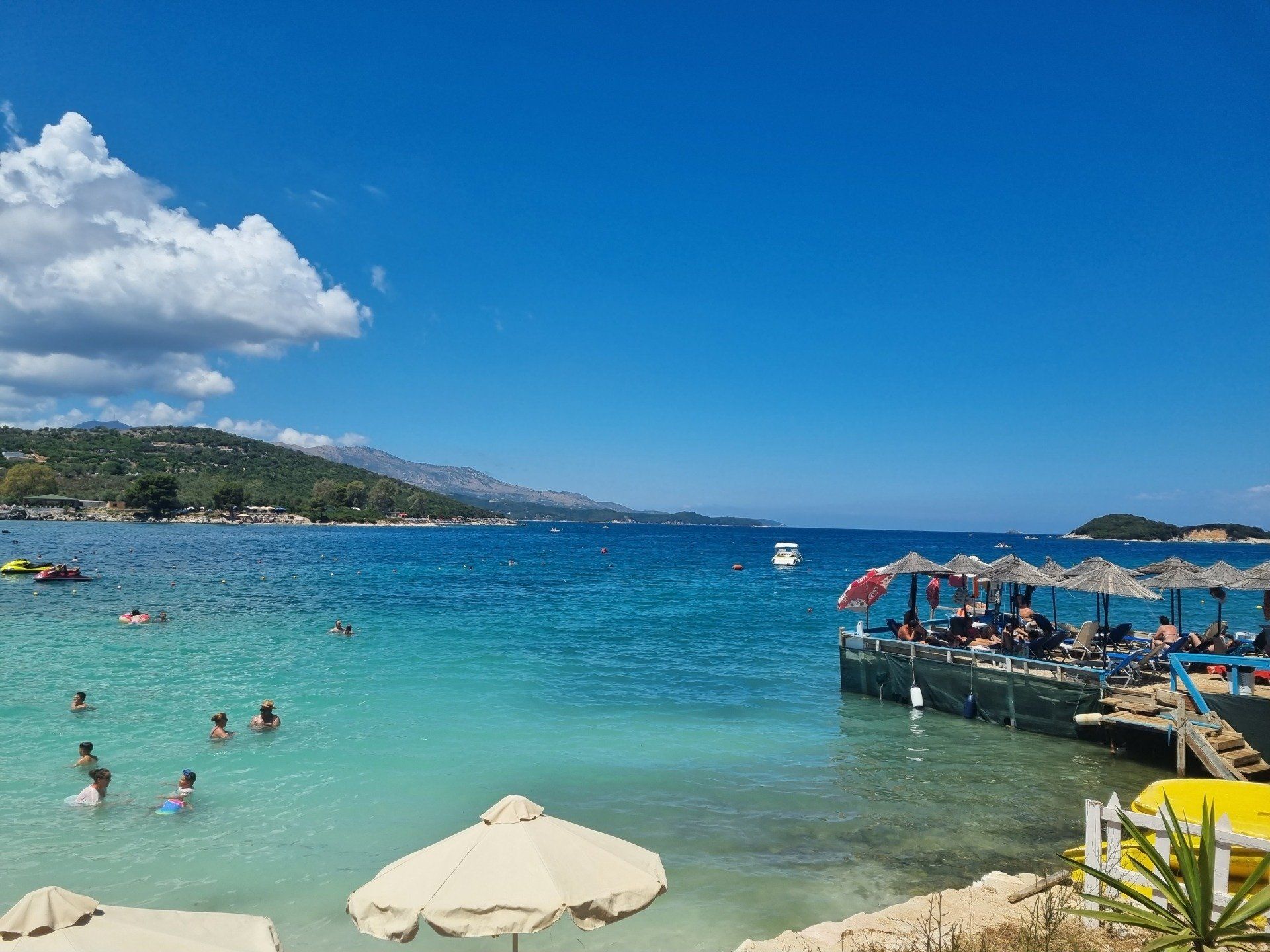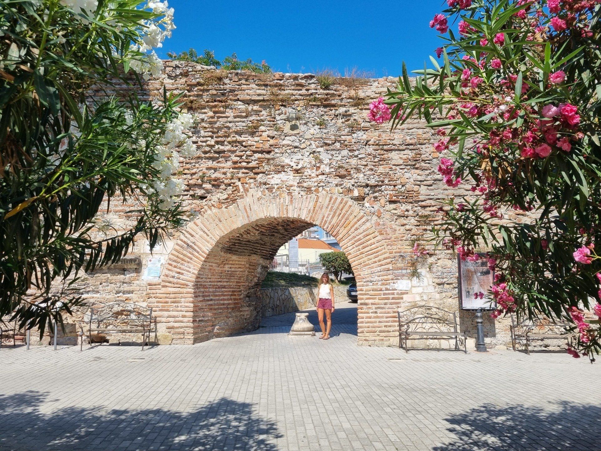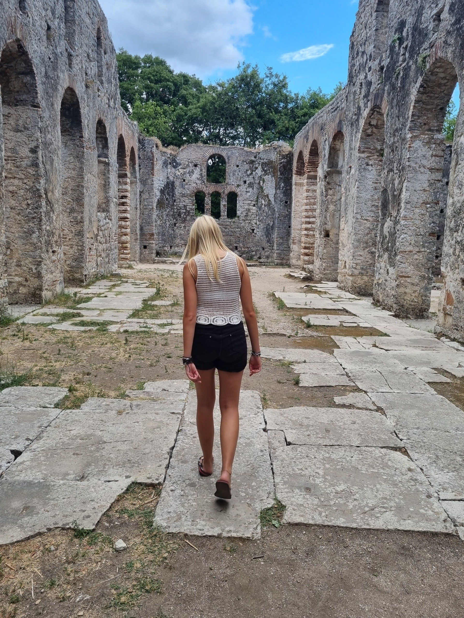 Nach einer weiteren Nacht im Hotel Ornella Beach verließen wir die traumhaften Küsten Griechenlands. Allerdings für nicht weniger als wiederum traumhafte Landschaften. Auch Albanien hatte nämlich so einiges zu bieten. Zunächst besichtigten wir die Ruinenstadt Butrint und machten uns anschließend auf den Weg nach Ksamil. Auch in diesem malerischen, kleinen Küstenort erwartete uns türkisblaues Wasser und Sandstrand. Am Strand waren zwar viele Leute, aber das konnte das Badeerlebnis kaum trüben. Abends erkundeten wir die nette kleine Stadt und gingen lecker Essen. Die Preise in Albanien sind für unsere Verhältnisse sehr günstig und so bekommt man Pizza und Pasta für etwa 4 Euro.