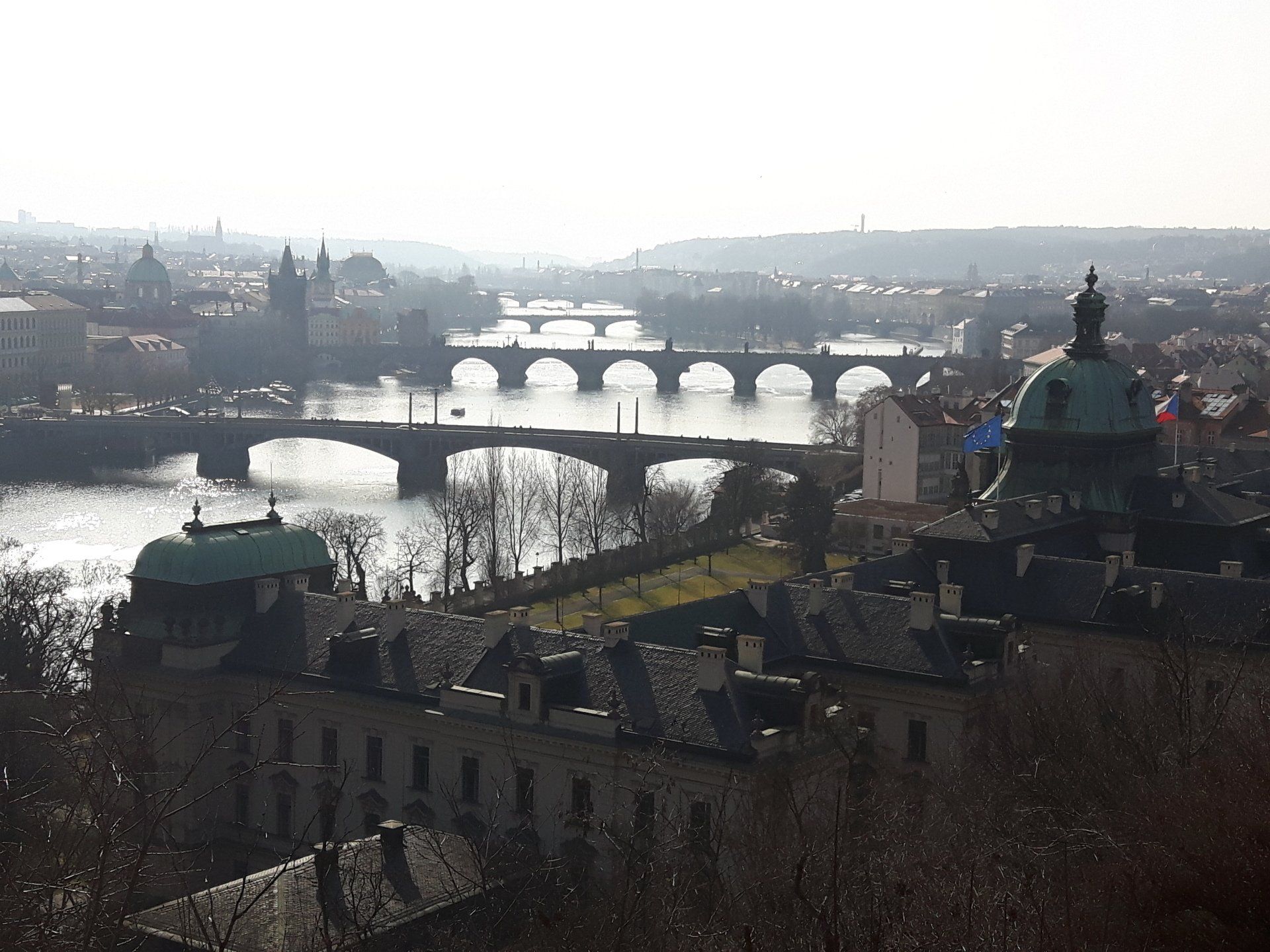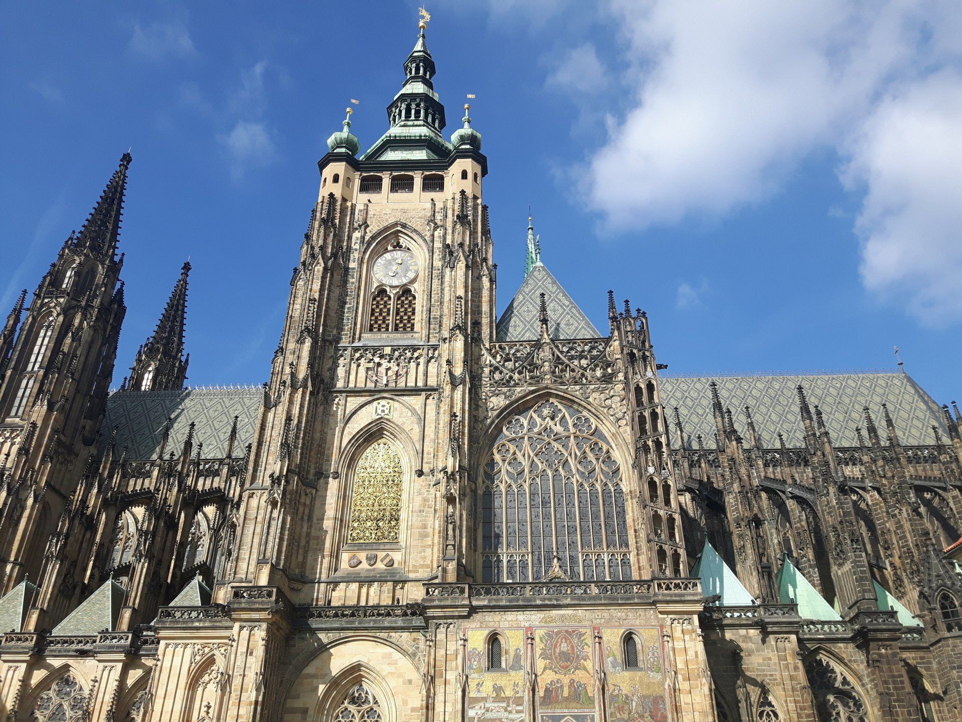 Auf dem Weg mit dem Auto nach Prag legten wir zunächst einen Zwischenstopp in Pilsen ein. Hier schlenderten wir zur St. Bartholomäus-Kathedrale und genossen den Blick vom Kirchturm aus auf die Stadt. Weiter ging's zur "Großen Synagoge", der fünftgrößten Synagoge der Welt.
